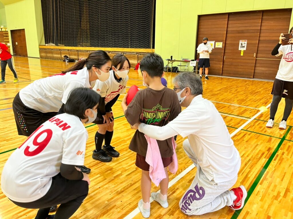 • フラッグフットボール日本代表選手(男子JAPAN選手5名、女子JAPAN選手5名)の参加による小学生へのフラッグフットボールの指導